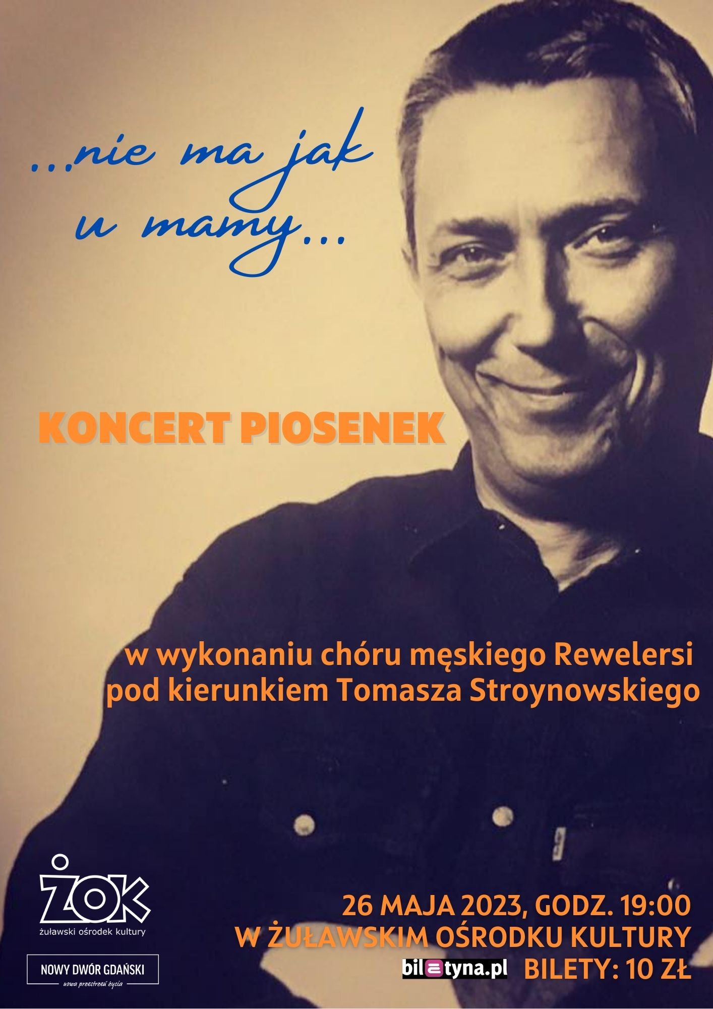 Tegoroczny Dzień Mamy w Żuławskim Ośrodku Kultury, będziemy świętować muzycznie. W piątek 26 maja zapraszamy na koncert chóru Rewelersi. Panowie wystąpią z repertuarem najpiękniejszych utworów Wojciecha Młynarskiego.